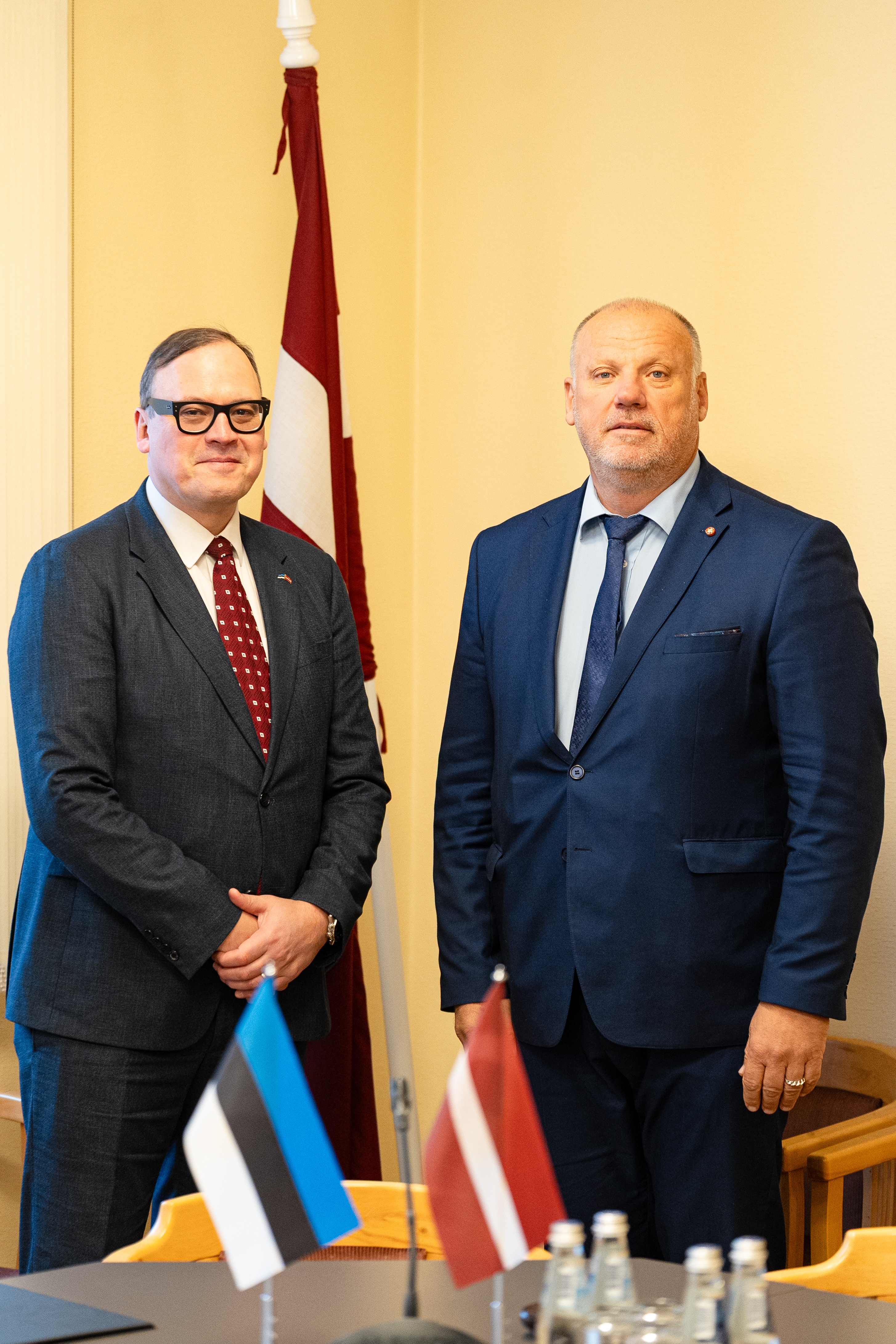 2025.gada 27.novembris. Saeimas Aizsardzības, iekšlietu un korupcijas novēršanas komisijas priekšsēdētājs Raimonds Bergmanis tiekas ar Igaunijas Republikas ārkārtējo un pilnvaroto vēstnieku Latvijas Republikā Ēriku Marmei(Eerik Marmei). Foto: Reinis Inkēns, Saeima Izmantošanas noteikumi: saeima.lv/lv/autortiesibas