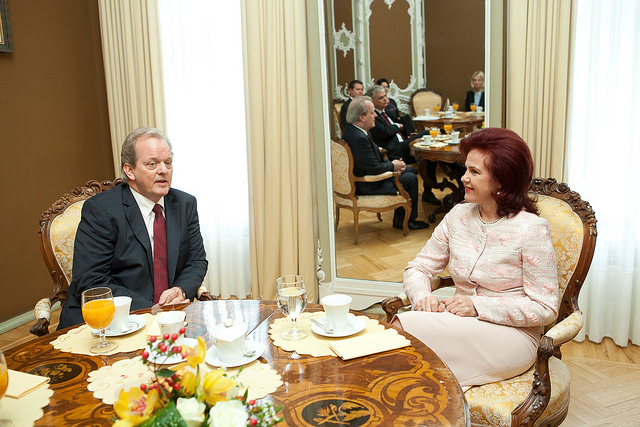 2012.gada 28.septembris. Nīderlandes ārkārtējā un pilnvarotā vēstnieka Latvijas Republikā Hendrika Gerita Kornēlisa van den Dola (Hendrik Gerrit Cornelis van den Dool) iepazīšanās vizīte pie Saeimas priekšsēdētājas Solvitas Āboltiņas. Foto: Ernests Dinka, Saeimas Kanceleja
