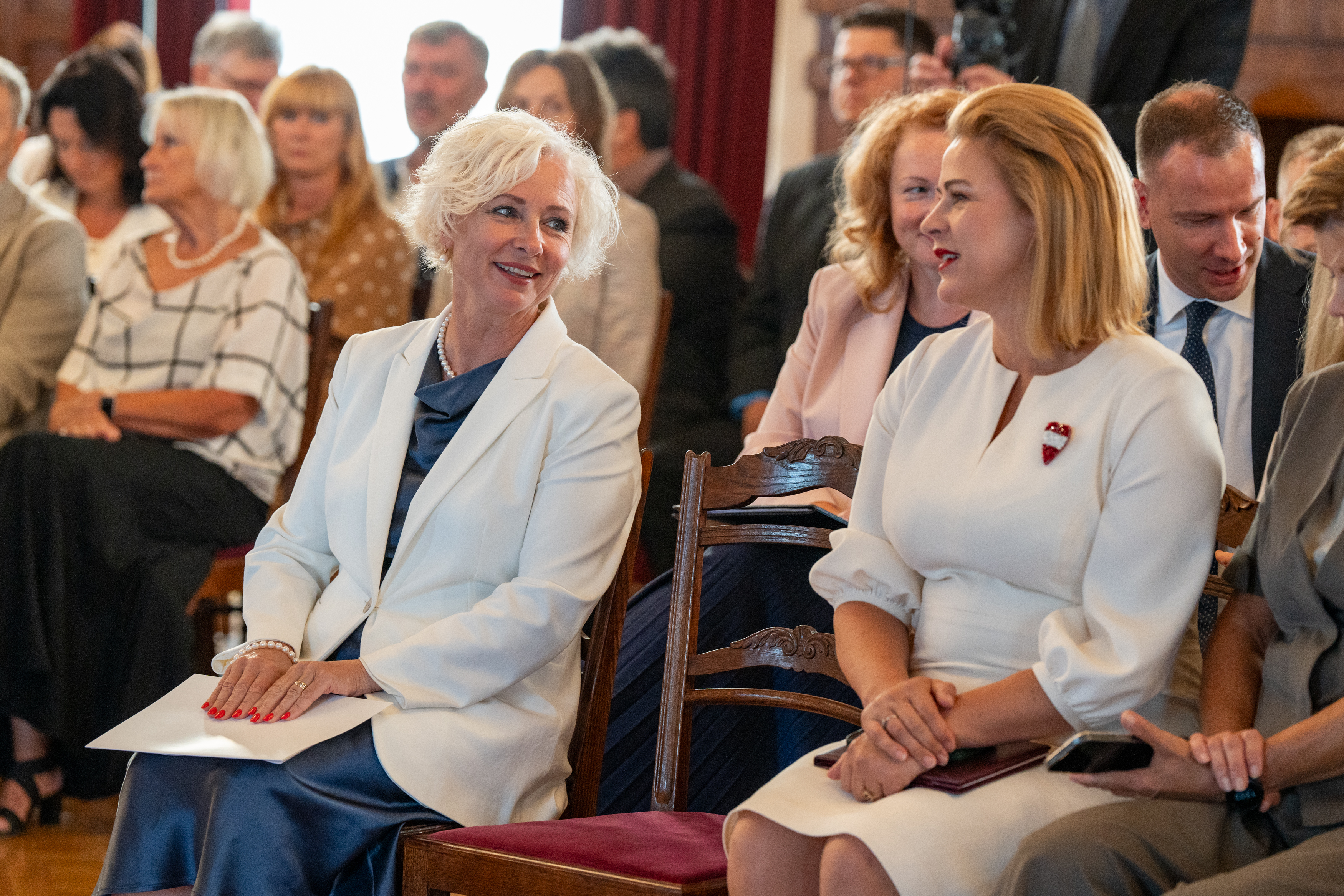 2024.gada 21.augusts. Saeimas priekšsēdētāja Daiga Mieriņa piedalās Valstiskuma balvas pasniegšanas ceremonijā Rīgas pilī. Foto: Ieva Ābele, Saeima Izmantošanas noteikumi: saeima.lv/lv/autortiesibas