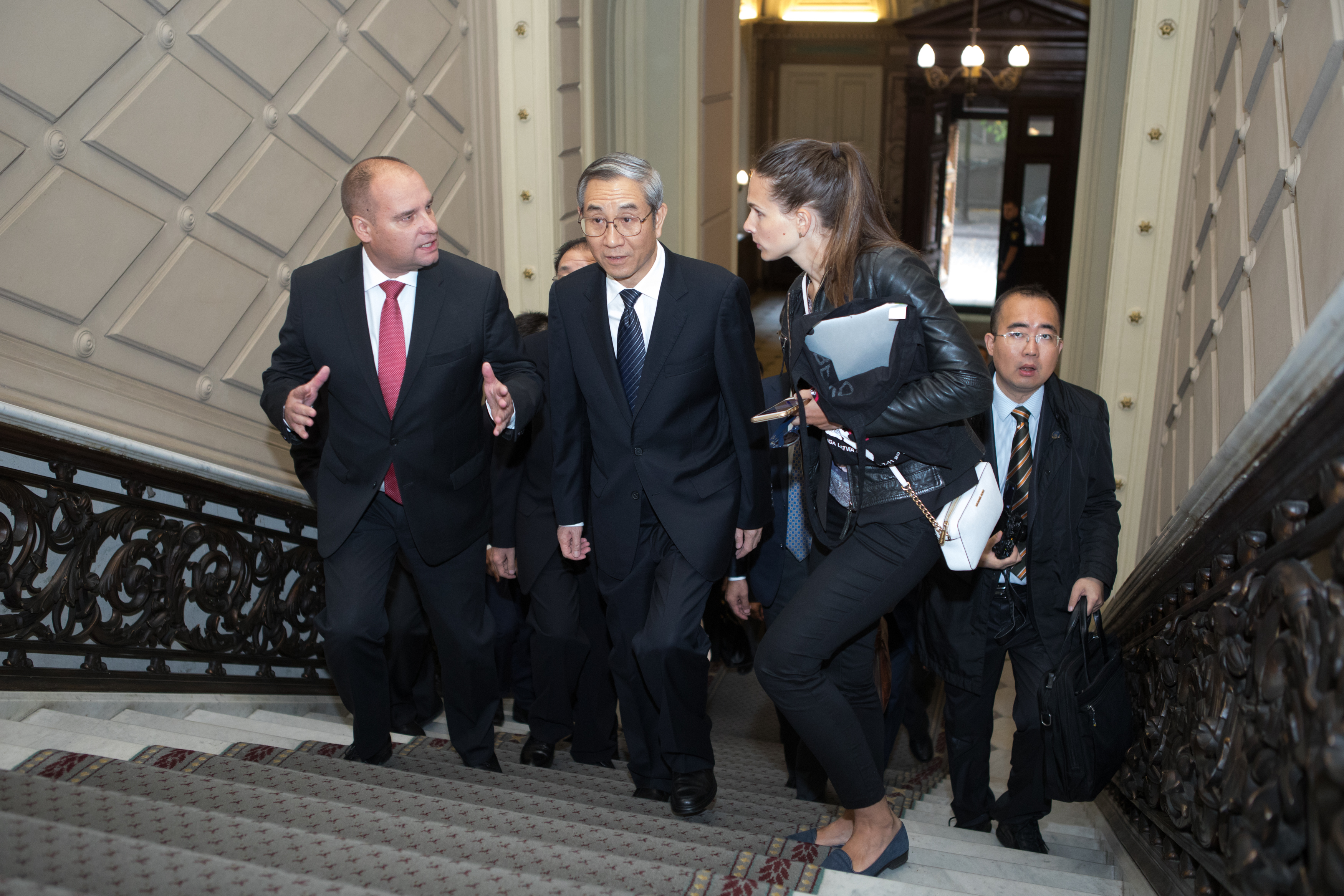 2017.gada 7.septembris. Saeimas priekšsēdētājas biedrs Gundars Daudze tiekas ar Ķīnas Tautas politiskās konsultatīvās konferences Nacionālās komitejas priekšsēdētāja vietnieku Ma Biao (Ma Biao). Foto: Ernests Dinka, Saeimas Administrācija Izmantošanas noteikumi: saeima.lv/lv/autortiesibas